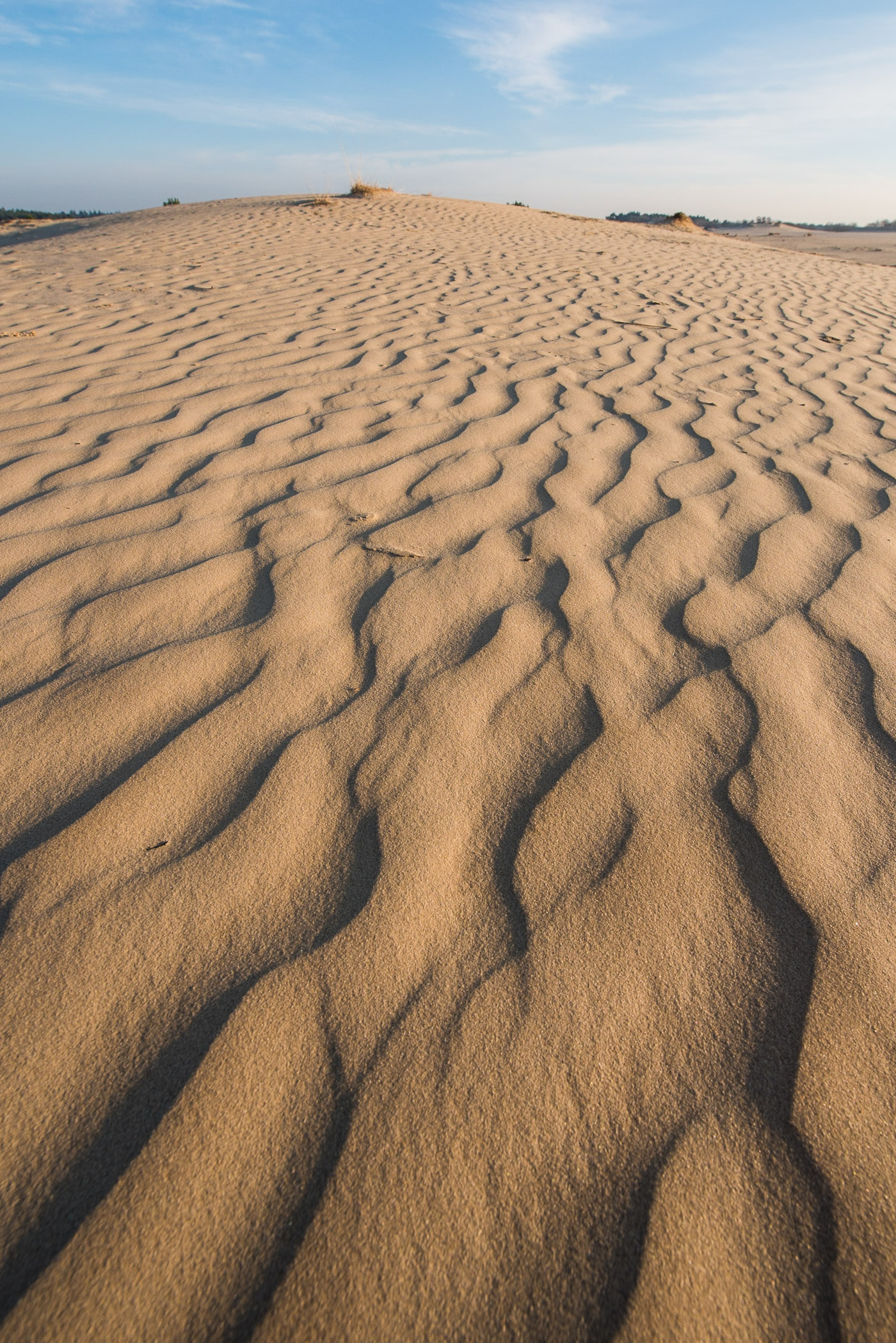 Let goed op het licht bij het maken van de foto’s, want het licht kan een textuur of patroon benadrukken. Zandgolven zie je bijvoorbeeld het beste als je fotografeert met strijklicht. Het licht schijnt dan van opzij over het zand, waardoor er schaduwen ontstaan en je het patroon zo beter ziet.