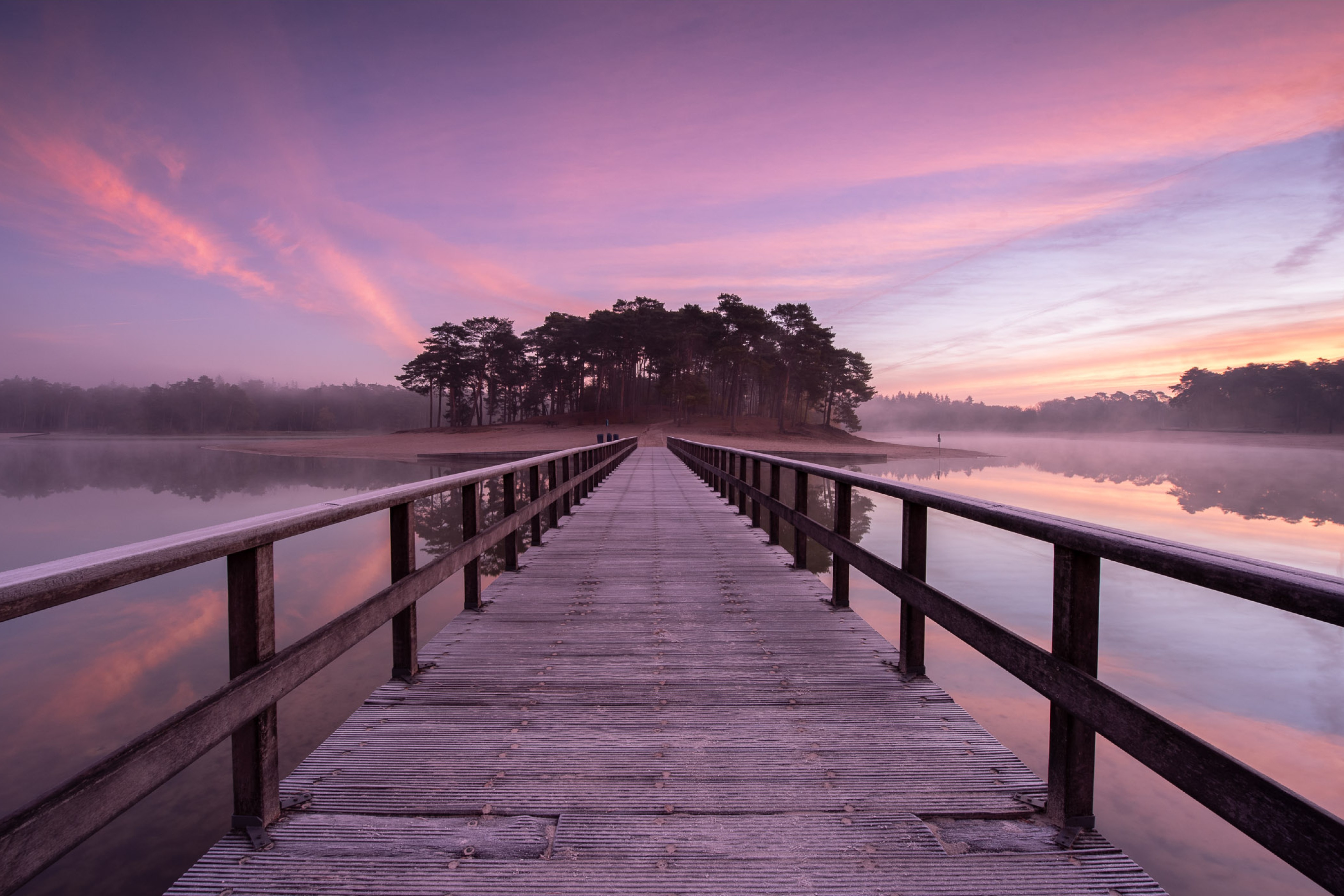 Niet alleen de brug en het pad vormen een leidende lijn. Als je goed kijkt zie je ook dat er in de lucht wat lijnen te ontdekken zijn. Lees ook de tips voor het fotograferen van een zonsopkomst en zonsondergang.