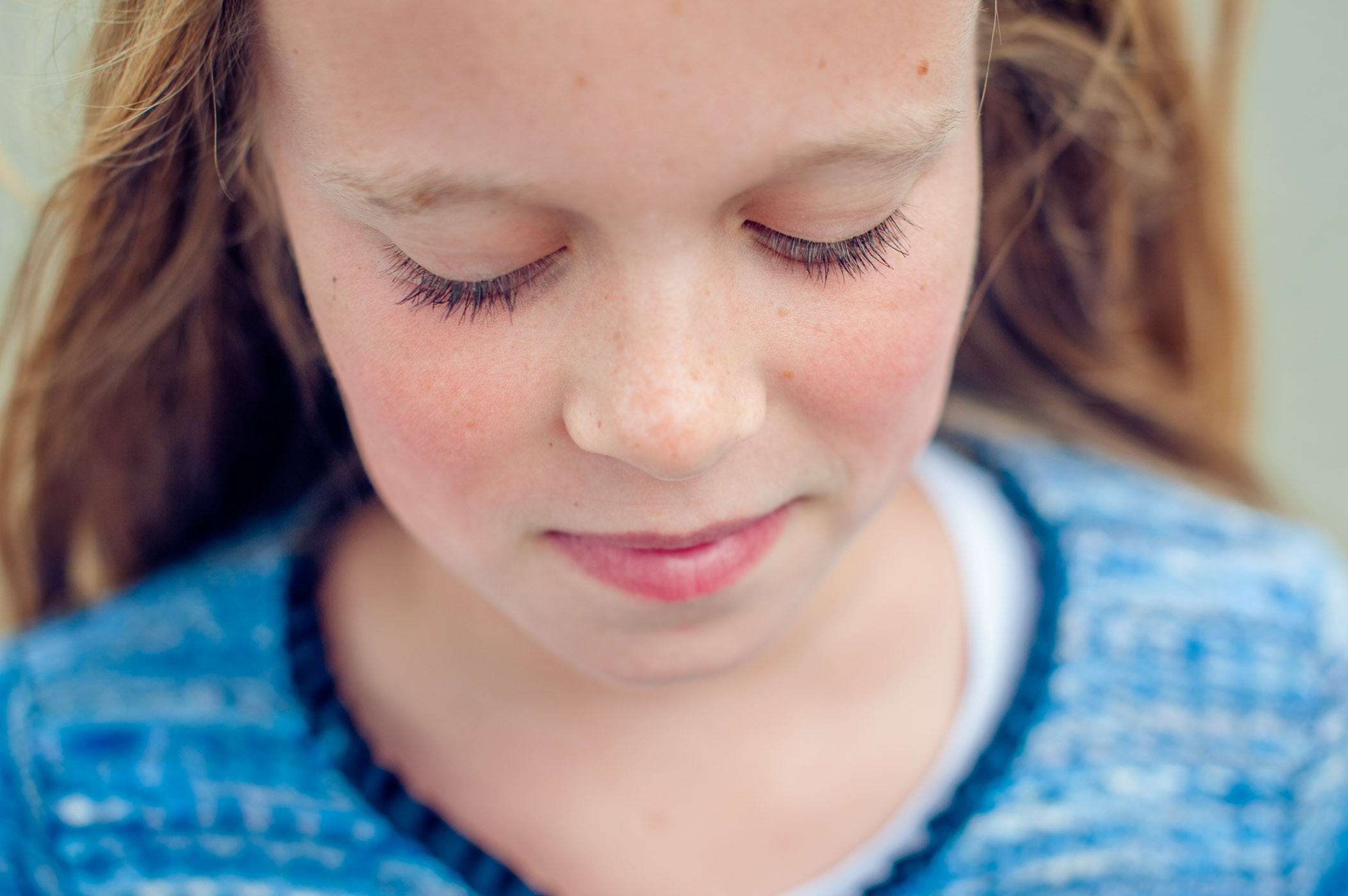 Nu líjkt deze instructie misschien een stuk ingewikkelder, maar geloof me… jonge kinderen snappen dit veel beter dan “Een beetje omlaag kijken, maar niet te veel en je ogen bijna helemaal dicht“. Probeer het maar eens uit! Alleen bij hele jonge kids is een wimperfoto eerder een lucky shot dan geinstrueerd.